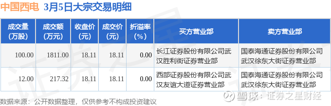 证券之星消息,3月5日中国西电发生大宗交易,交易数据如下: