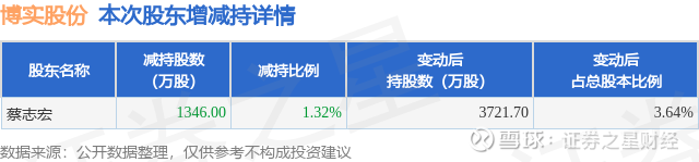 证券之星消息,3月5日博实股份发布公告《博实股份:关于公司股东权益变动触及1%整数倍的公告》,其股东蔡志宏于2026年1月21日至2026年3月5日间合计减持1346.0万股,占公司目前总股本的1.3163%,变动期间该股股价下跌10.65%,截止3月5日收盘报15.18元。