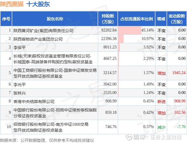 根据陕西黑猫2025年三季报公布的十大股东详情如下: