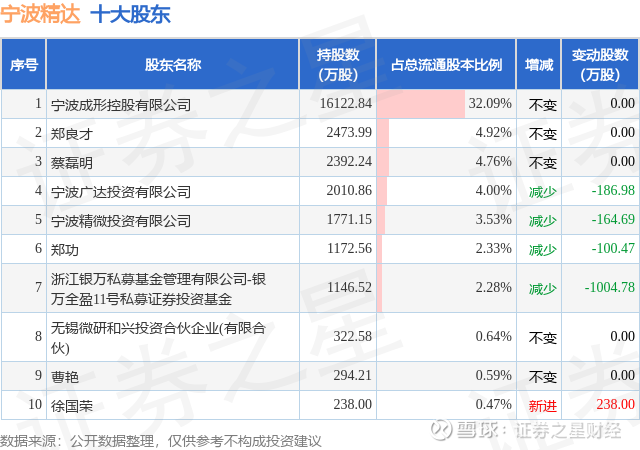 根据宁波精达2025年三季报公布的十大股东详情如下: