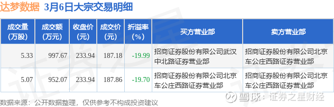 证券之星消息,3月6日达梦数据发生大宗交易,交易数据如下: