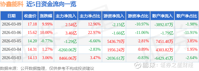 3月9日的资金流向数据方面,主力资金净流入2.54亿元,占总成交额12.96%,游资资金净流出2.15亿元,占总成交额10.97%,散户资金净流出3892.07万元,占总成交额1.98%。