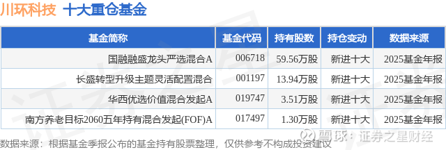 重仓川环科技的公募基金请见下表:
