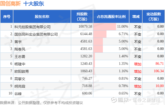 根据国创高新2025年三季报公布的十大股东详情如下: