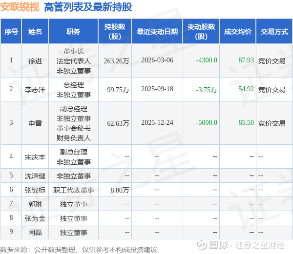 安联锐视的高管列表及最新持股情况如下: