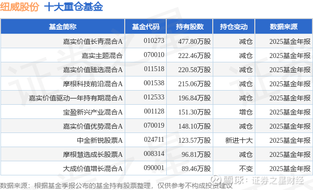 重仓纽威股份的前十大公募基金请见下表:
