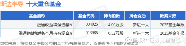 根据2025基金年报公募基金重仓股数据,重仓该股的公募基金共2家,其中持有数量最多的公募基金为融通基金的融通收益增强债券A。融通收益增强债券A目前规模为1.98亿元,最新净值1.1981(3月9日),较上一交易日下跌0.24%,近一年上涨4.36%。该公募基金现任基金经理为樊鑫 李可 吴嫣睿紫。樊鑫在任的基金产品包括:融通稳健增利6个月持有混合A,管理时间为2023年3月6日至今,期间收益率为1.51%;融通通福债券(LOF)A,管理时间为2023年6月6日至今,期间收益率为10.29%;融通可转债债券A,管理时间为2023年8月5日至今,期间收益率为-10.21%;吴嫣睿紫在任的基金产品包括:融通四季添利债券(LOF)A,管理时间为2024年12月19日至今,期间收益率为1.06%;融通增益债券A/B,管理时间为2025年4月2日至今,期间收益率为1.64%;融通易支付货币A,管理时间为2025年11月6日至今,期间收益率为0.35%;李可在任的基金产品包括:融通稳健增利6个月持有混合A,管理时间为2025年6月24日至今,期间收益率为8.69%;融通四季添利债券(LOF)A,管理时间为2025年9月26日至今,期间收益率为0.54%;融通通福债券(LOF)A,管理时间为2025年9月26日至今,期间收益率为3.08%。