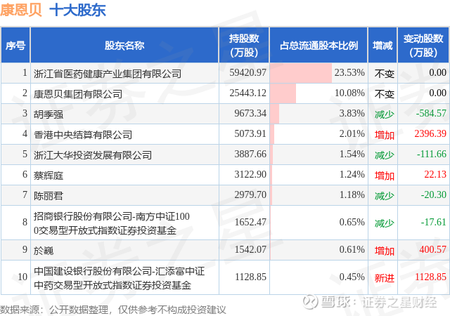 根据康恩贝2025年三季报公布的十大股东详情如下: