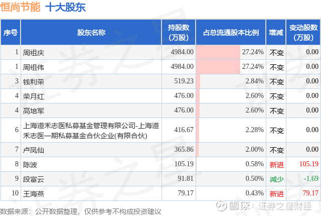 根据恒尚节能2025年三季报公布的十大股东详情如下: