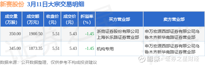证券之星消息,3月11日新赛股份发生大宗交易,交易数据如下: