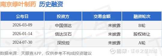 证券之星消息,根据天眼查APP于3月9日公布的信息整理,南京绿叶制药有限公司B轮融资,融资额未披露,参与投资的机构包括中国信达。