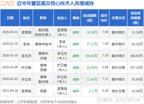 二六三近半年内的董监高及核心技术人员增减持详情如下: