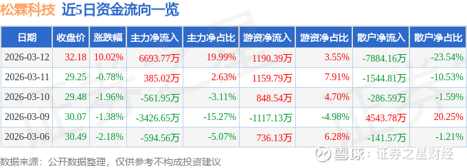 3月12日的资金流向数据方面,主力资金净流入6693.77万元,占总成交额19.99%,游资资金净流入1190.39万元,占总成交额3.55%,散户资金净流出7884.16万元,占总成交额23.54%。