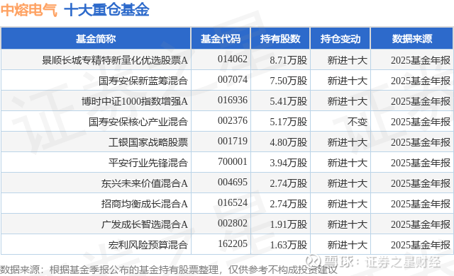 重仓中熔电气的前十大公募基金请见下表: