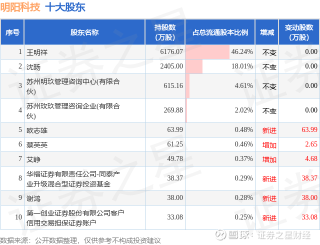 根据明阳科技2025年三季报公布的十大股东详情如下: