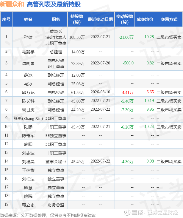 新疆众和近半年内的董监高及核心技术人员增减持详情如下: