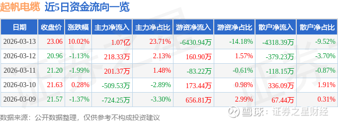 3月13日的资金流向数据方面,主力资金净流入1.07亿元,占总成交额23.71%,游资资金净流出6430.94万元,占总成交额14.18%,散户资金净流出4318.39万元,占总成交额9.52%。