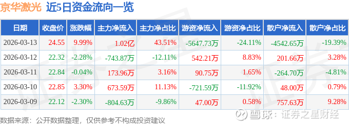 3月13日的资金流向数据方面,主力资金净流入1.02亿元,占总成交额43.51%,游资资金净流出5647.73万元,占总成交额24.11%,散户资金净流出4542.65万元,占总成交额19.39%。