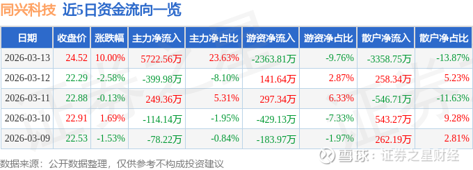 3月13日的资金流向数据方面,主力资金净流入5722.56万元,占总成交额23.63%,游资资金净流出2363.81万元,占总成交额9.76%,散户资金净流出3358.75万元,占总成交额13.87%。