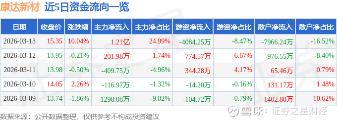 3月13日的资金流向数据方面,主力资金净流入1.21亿元,占总成交额24.99%,游资资金净流出4084.25万元,占总成交额8.47%,散户资金净流出7966.24万元,占总成交额16.52%。
