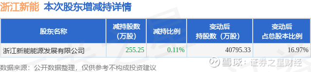 证券之星消息,3月13日浙江新能发布公告《浙江新能:浙江新能关于持股5%以上股东减持计划实施完毕暨减持结果公告》,其股东浙江新能能源发展有限公司于2026年3月10日至2026年3月13日间合计减持255.25万股,占公司目前总股本的0.1061%,变动期间该股股价上涨4.17%,截止3月13日收盘报8.99元。