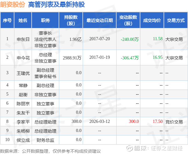 朗姿股份的高管列表及最新持股情况如下: