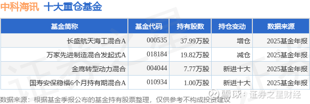重仓中科海讯的公募基金请见下表: