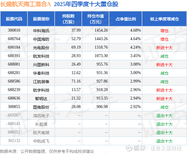 根据2025基金年报公募基金重仓股数据,重仓该股的公募基金共4家,其中持有数量最多的公募基金为长盛基金的长盛航天海工混合A。长盛航天海工混合A目前规模为2.09亿元,最新净值1.8224(3月13日),较上一交易日下跌2.58%,近一年上涨37.37%。该公募基金现任基金经理为王柄方。王柄方在任的基金产品包括:长盛转型升级主题灵活配置混合,管理时间为2022年7月22日至今,期间收益率为-33.76%;