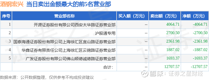 证券之星消息,沪深交易所2026年3月16日公布的交易公开信息显示,酒钢宏兴(600307)因有价格涨跌幅限制的日收盘价格跌幅偏离值达到7%的前五只证券登上龙虎榜。此次是近5个交易日内第2次上榜。