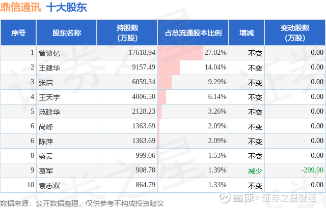 根据鼎信通讯2025年三季报公布的十大股东详情如下: