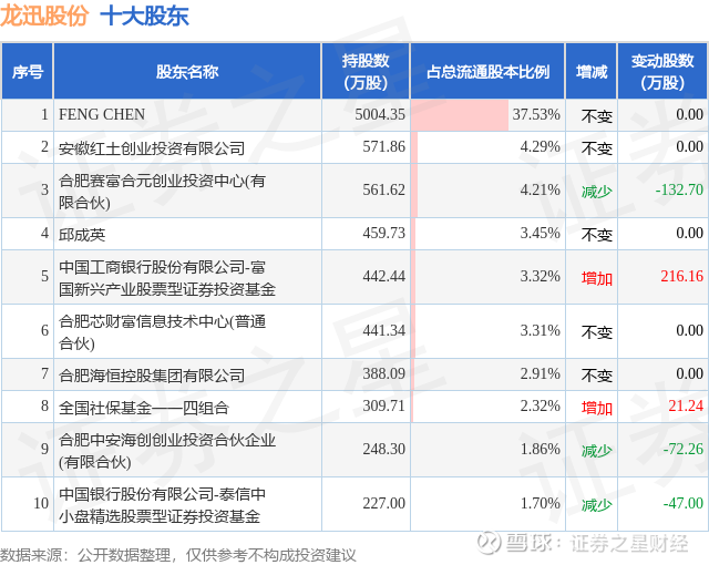 根据龙迅股份2025年三季报公布的十大股东详情如下: