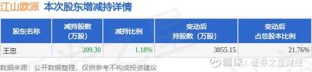 证券之星消息,3月16日江山欧派发布公告《江山欧派:江山欧派关于持股5%以上股东权益变动触及1%刻度的提示性公告》,其股东王忠于2026年3月12日至2026年3月13日间合计减持209.3万股,占公司目前总股本的1.1813%,变动期间该股股价下跌1.79%,截止3月13日收盘报14.23元。