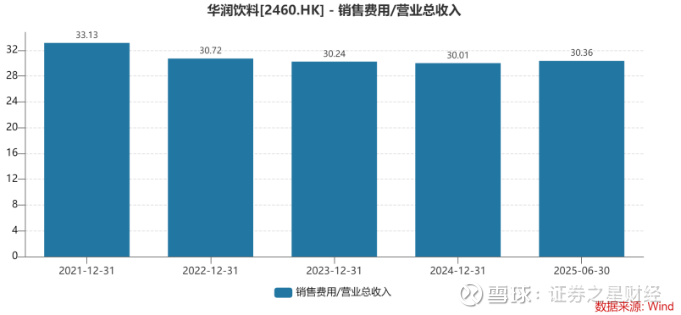证券之星注意到,面对竞争压力,华润饮料正在通过加大营销投入、调整产品结构以及推进渠道变革等方式寻求突围。在营销端,华润怡宝侧重体育运动营销战略,聚焦运动核心人群。数据显示,其营销费用已从2021年的37.57亿元增至2024年的40.58亿元;2025年中报显示,营销费用达18.84亿元,对应销售费用率为30.36%,高于同期农夫山泉19.6%的水平。