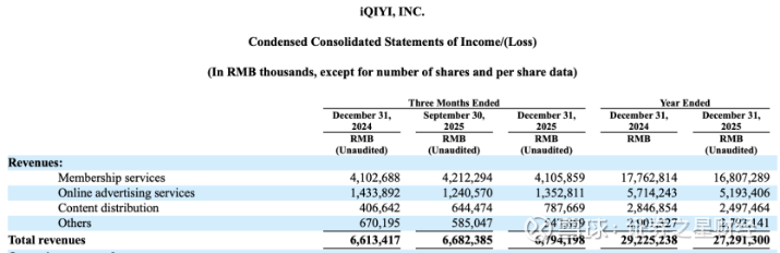 证券之星注意到,除了会员服务业务之外,爱奇艺的在线广告服务、内容发行及其他业务的收入也出现不同程度的下滑。