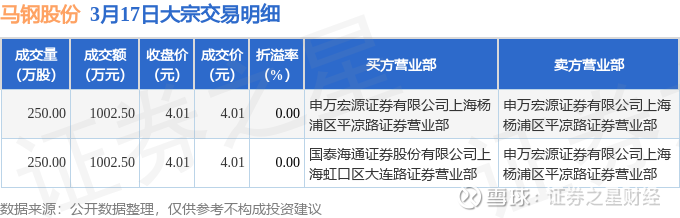 证券之星消息,3月17日马钢股份发生大宗交易,交易数据如下: