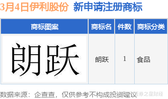 证券之星消息,根据天眼查APP数据显示,近日内蒙古伊利实业集团股份有限公司新提交“朗跃”商标注册申请。商标申请详情如下:
