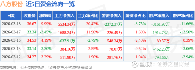 3月18日的资金流向数据方面,主力资金净流入5534.34万元,占总成交额20.42%,游资资金净流出2372.37万元,占总成交额8.75%,散户资金净流出3161.97万元,占总成交额11.66%。
