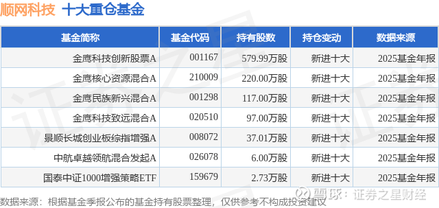 重仓顺网科技的公募基金请见下表: