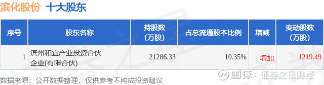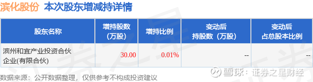 证券之星消息,3月18日滨化股份发布公告《滨化股份:滨化股份关于第一大股东首次增持公司股份暨增持计划进展公告》,其股东滨州和宜产业投资合伙企业(有限合伙)于2026年3月18日合计增持30.0万股,占公司目前总股本的0.0146%,变动期间该股股价下跌0.95%,截止3月18日收盘报5.22元。