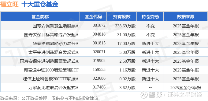 持有福立旺最多的基金为国寿安保智慧生活股票A,目前规模为21.21亿元,最新净值2.254(3月18日),较上一交易日上涨1.81%,近一年上涨40.3%。该基金现任基金经理为张琦。