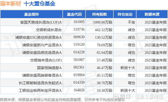 根据2025基金年报公募基金重仓股数据,重仓该股的公募基金共22家,其中持有数量最多的公募基金为富国基金的富国天惠成长混合(LOF)A。富国天惠成长混合(LOF)A目前规模为211.02亿元,最新净值3.005(3月18日),较上一交易日下跌0.05%,近一年上涨18.45%。该公募基金现任基金经理为朱少醒。