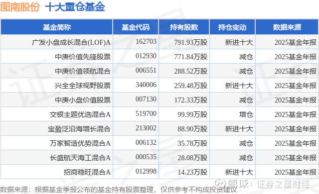 重仓图南股份的前十大公募基金请见下表: