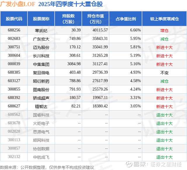 根据2025基金年报公募基金重仓股数据,重仓该股的公募基金共22家,其中持有数量最多的公募基金为广发基金的广发小盘成长混合(LOF)A。广发小盘成长混合(LOF)A目前规模为57.68亿元,最新净值1.9667(3月18日),较上一交易日上涨1.43%,近一年上涨39.65%。该公募基金现任基金经理为吴远怡 陈韫中。吴远怡在任的基金产品包括:广发创新升级混合,管理时间为2020年9月30日至今,期间收益率为-10.51%;广发科技创新混合A,管理时间为2020年11月18日至今,期间收益率为76.33%;广发价值核心混合A,管理时间为2022年11月1日至今,期间收益率为102.07%;广发成长领航一年持有混合A,管理时间为2023年3月10日至今,期间收益率为131.82%。陈韫中在任的基金产品包括:广发中小盘精选混合A,管理时间为2021年9月28日至今,期间收益率为60.28%;广发成长启航混合A,管理时间为2024年3月19日至今,期间收益率为177.09%;广发科技动力股票,管理时间为2024年5月31日至今,期间收益率为70.42%;