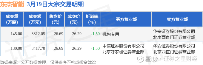 证券之星消息,3月19日东杰智能发生大宗交易,交易数据如下: