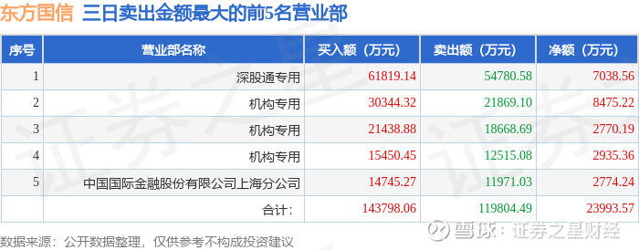 证券小知识:龙虎榜是交易所披露的竞价交易公开信息,现身龙虎榜的个股都是当日最为活跃的个股,是投资者日常重点关注的数据。交易所公布当日买入金额和卖出金额前五名的席位,其中一些席位代表特殊意义,如机构专用席位是指基金专用席位、券商自营专用席位、社保专用席位、券商理财专用席位、保险机构专用席位、保险机构租用席位、QFII专用席位等机构投资者买卖证券的专用通道和席位。深股通专用、沪股通专用为北向资金的交易席位。