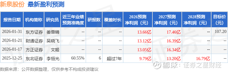 证券之星数据中心根据近三年发布的研报数据计算,东北证券李恒光研究员团队对该股研究较为深入,近三年预测准确度均值为60.55%,其预测2026年度归属净利润为盈利9.79亿,根据现价换算的预测PE为36.21。