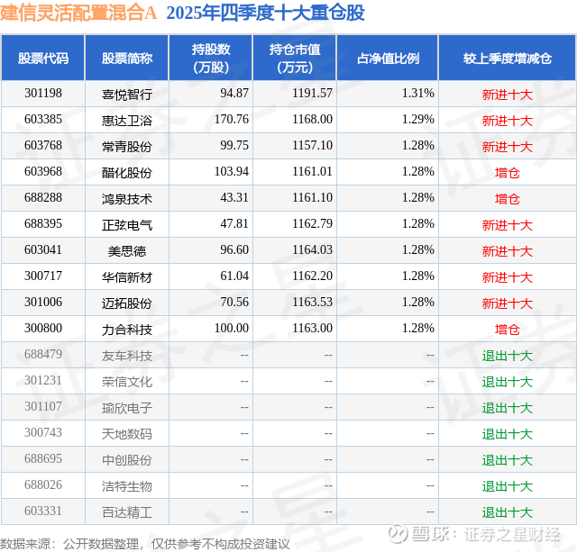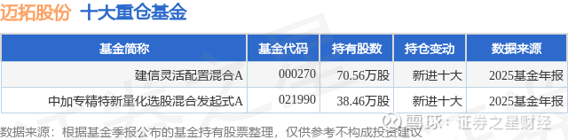 根据2025基金年报公募基金重仓股数据,重仓该股的公募基金共2家,其中持有数量最多的公募基金为建信基金的建信灵活配置混合A。建信灵活配置混合A目前规模为2.49亿元,最新净值1.9078(3月19日),较上一交易日下跌2.66%,近一年上涨46.33%。该公募基金现任基金经理为叶乐天 郭志腾。叶乐天在任的基金产品包括:建信央视财经50指数(LOF),管理时间为2013年3月28日至今,期间收益率为249.43%;建信中证500指数增强A,管理时间为2014年1月27日至今,期间收益率为256.36%;建信精工制造指数增强,管理时间为2015年8月26日至今,期间收益率为153.71%;建信中证1000指数增强A,管理时间为2018年11月22日至今,期间收益率为214.49%。郭志腾在任的基金产品包括:建信沪深300红利ETF联接A,管理时间为2023年12月7日至今,期间收益率为39.6%;建信沪深300红利ETF,管理时间为2023年12月7日至今,期间收益率为41.19%;建信中证A500指数增强A,管理时间为2025年6月3日至今,期间收益率为22.83%。