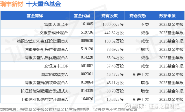 重仓瑞丰新材的前十大公募基金请见下表: