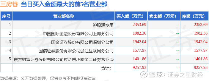 证券小知识:龙虎榜是交易所披露的竞价交易公开信息,现身龙虎榜的个股都是当日最为活跃的个股,是投资者日常重点关注的数据。交易所公布当日买入金额和卖出金额前五名的席位,其中一些席位代表特殊意义,如机构专用席位是指基金专用席位、券商自营专用席位、社保专用席位、券商理财专用席位、保险机构专用席位、保险机构租用席位、QFII专用席位等机构投资者买卖证券的专用通道和席位。深股通专用、沪股通专用为北向资金的交易席位。