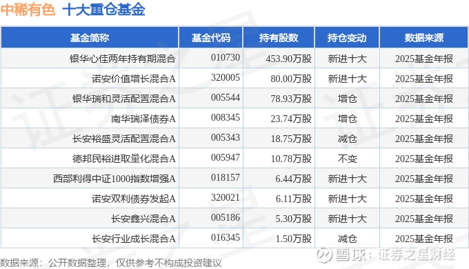 持有中稀有色最多的基金为银华心佳两年持有期混合,目前规模为63.54亿元,最新净值1.082(3月19日),较上一交易日下跌2.13%,近一年上涨61.66%。该基金现任基金经理为李晓星 张腾 杜宇。